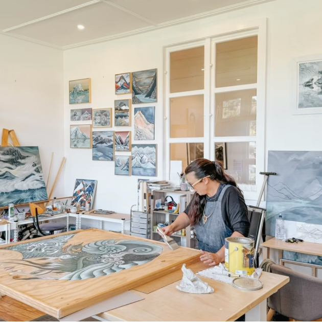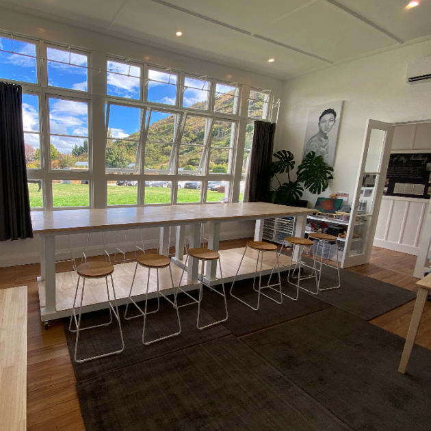 The studio comfortably seats up to 16 students for group workshops with handmade benches and stools, that can be rolled into different configurations, allowing it to be used as a working art space. Also available to creatives for short exhibition rental with hanging system or as a teaching space for community events, assistance is available for ticketed workshops or weekly classes. All events or workshops must have a creative and educational element to be run in the Schoolhouse studios.