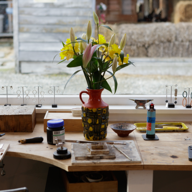 Studio 42 jewellery studio in Country Lane is all set up with everything you need for goldsmithing, hobby making and contemporary jewellery.